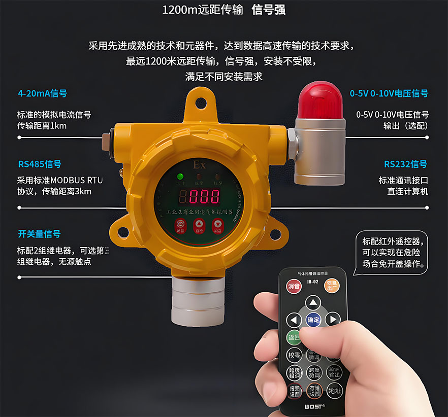 ②气体传感器可设定常规高低报警、区间控制两种报警模式,可控制气体的浓度区间范围